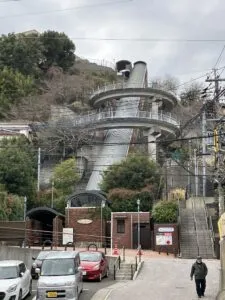 普通は下のANAホテルの横の道から上がるのですが、実は市電でもう一駅行ったところから斜行エレベーターで上がる方法があって今回初めて利用しました。観光客もほとんどいなくて楽にグラバー園の一番高い入口に行けました。