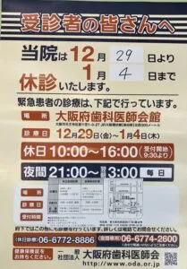 年内は28日の午前中まで、新年は5日より診療いたします。
